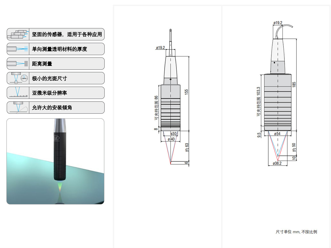 ● 除了反光與透明表面的距離測量以外,該傳感器還可以用于單向測量清潔薄膜,板材或多層結構的厚度