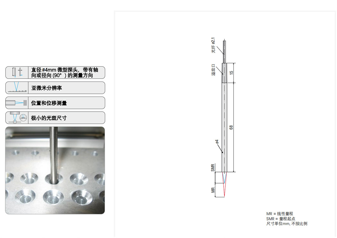 ● 雖然外形直徑僅僅有4mm,但能提供光譜共焦測量理論的全部?jì)?yōu)點(diǎn)。