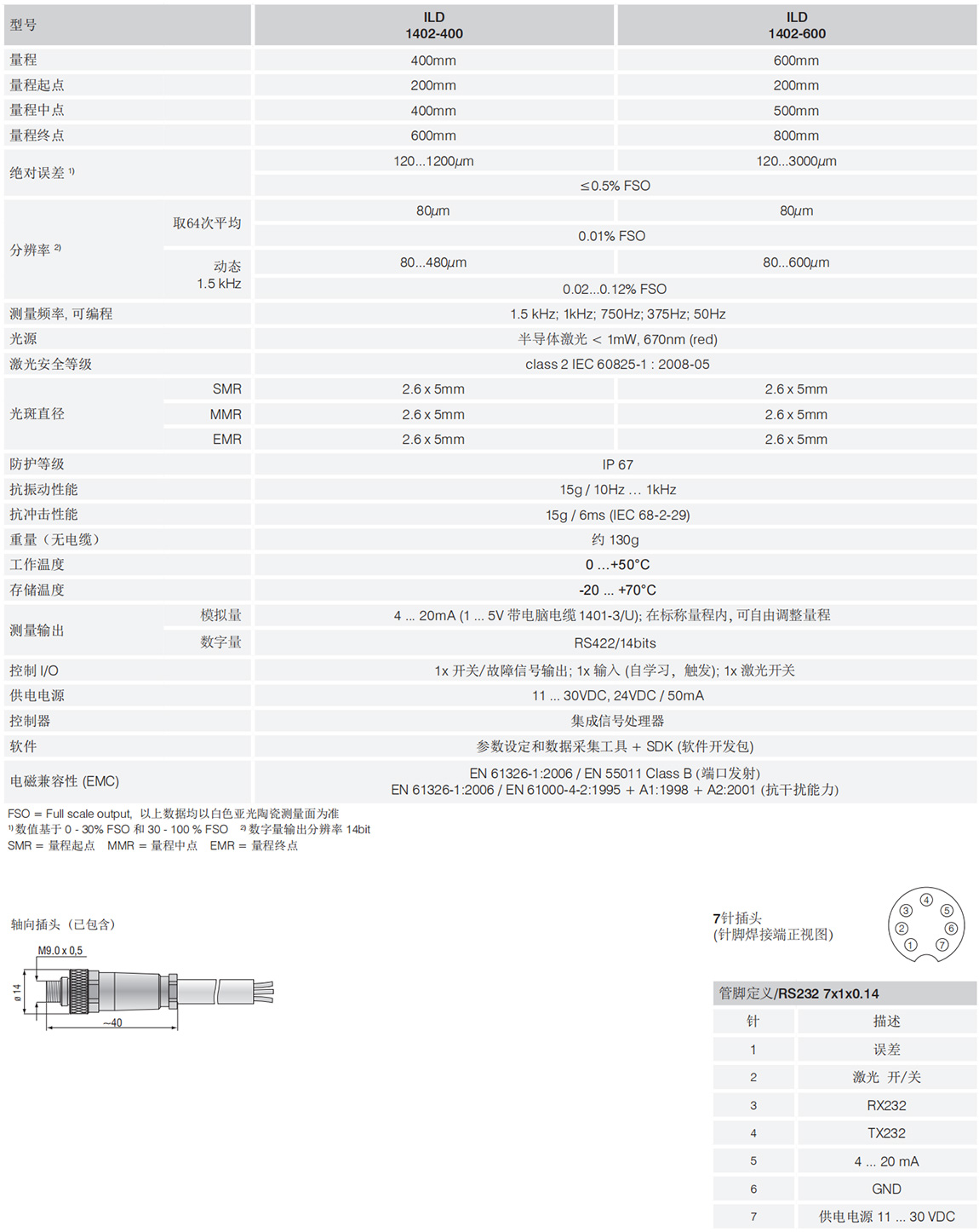 optoNCDT 1402 系列激光傳感器包含高度集成的數字信號處理器。用于位移, 距離和位置測量。該傳感器可用于眾多材質(zhì)表面的非接觸測量??蓜偃涡枰尚D電纜接口和RS232協(xié)議的測量任務(wù)。多樣的曝光時(shí)間使該傳感器適用于不同被測物體。